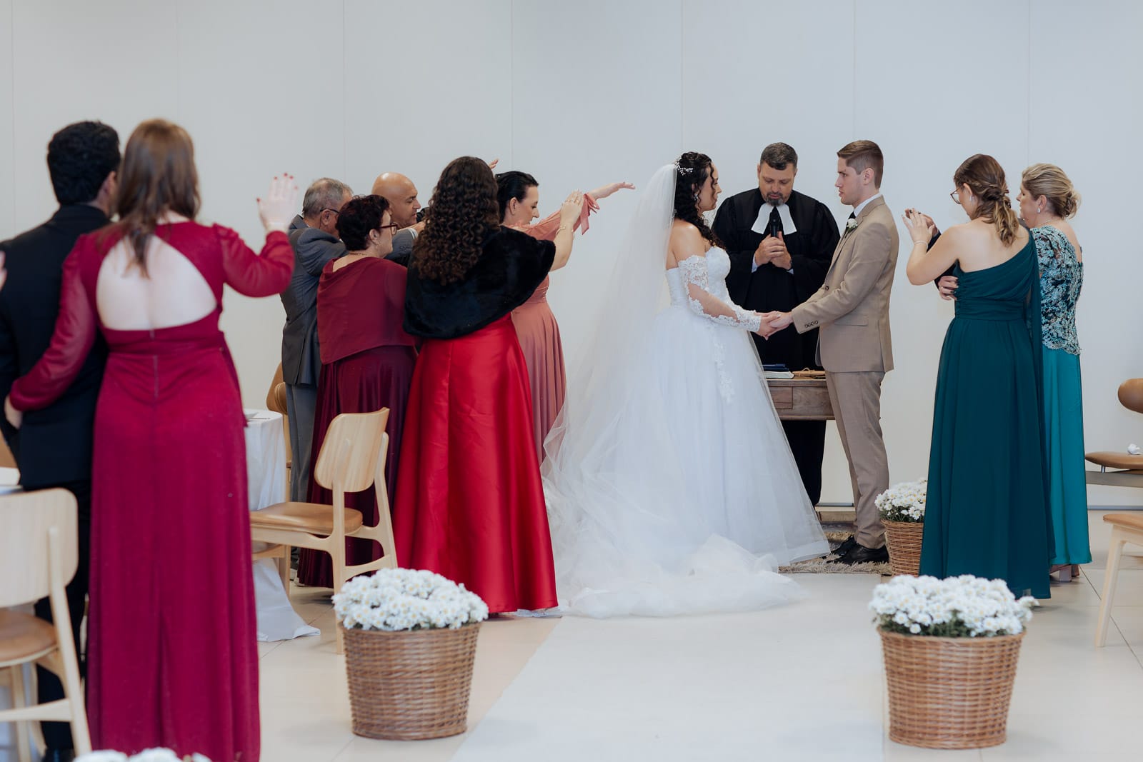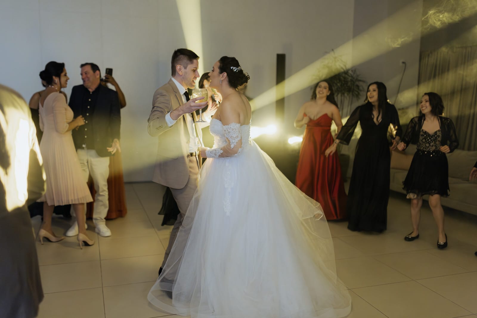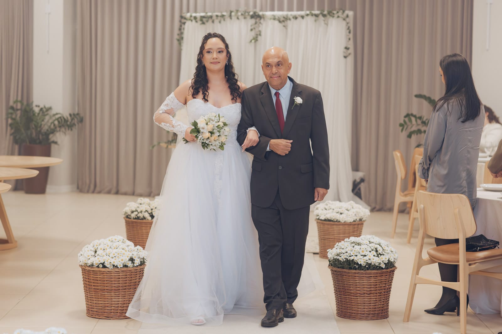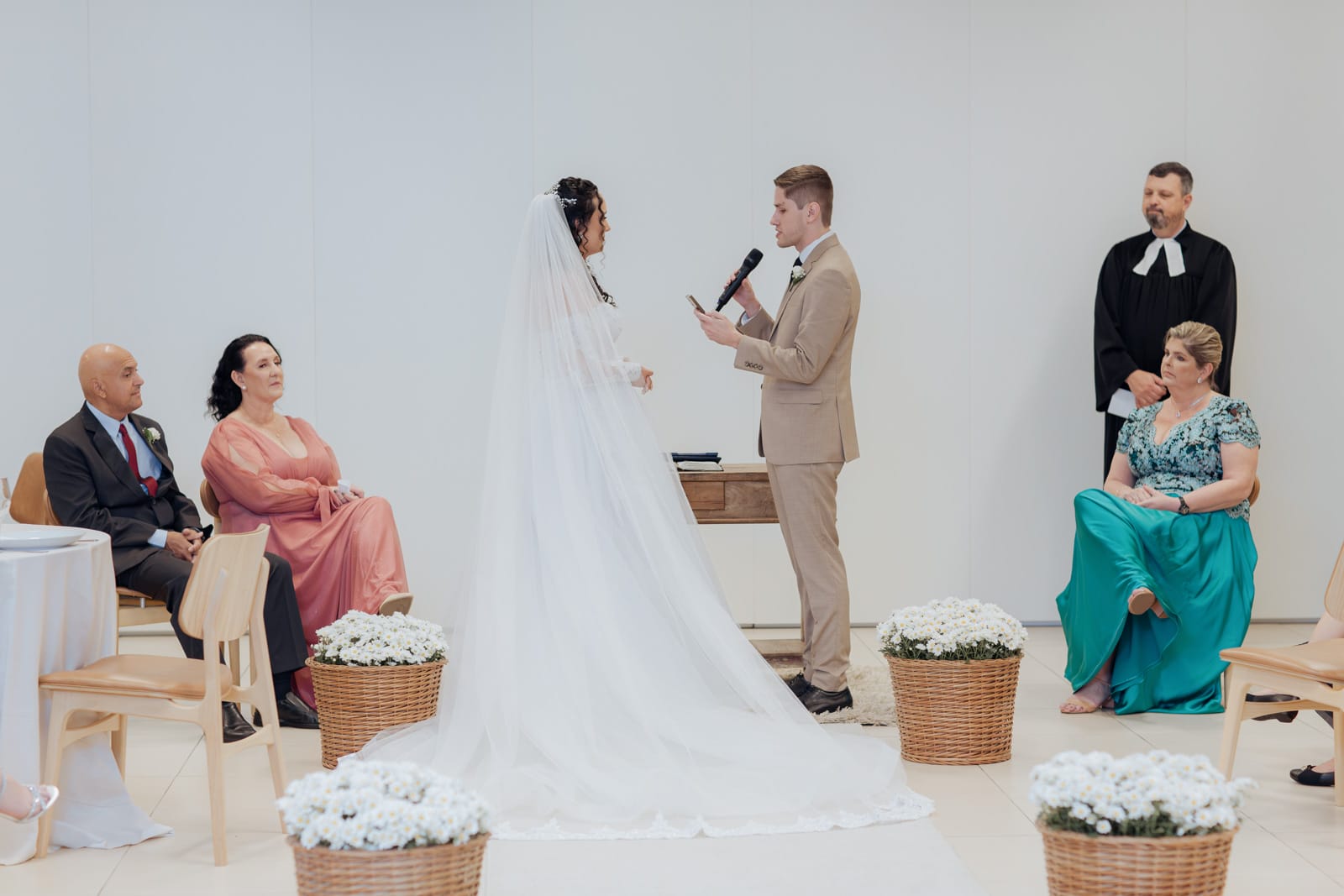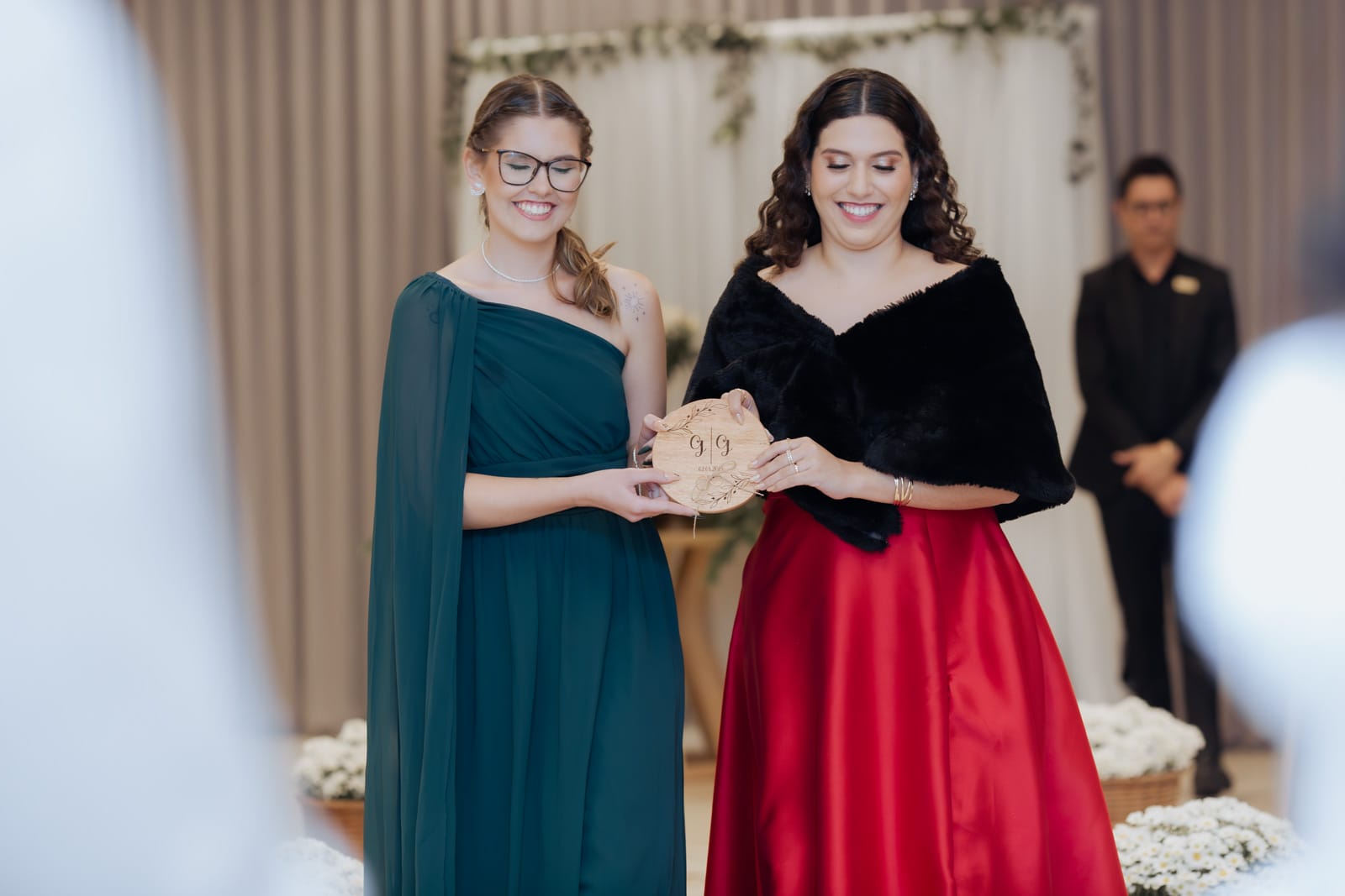 Gabriel e Gabriela optaram por um casamento intimista, cercado apenas pelas pessoas mais queridas. Essa escolha proporcionou uma atmosfera de aconchego e cumplicidade, onde cada convidado pôde sentir e compartilhar da felicidade genuína do casal. A emoção estava no ar, desde a troca de votos até os abraços calorosos e as palavras de carinho.