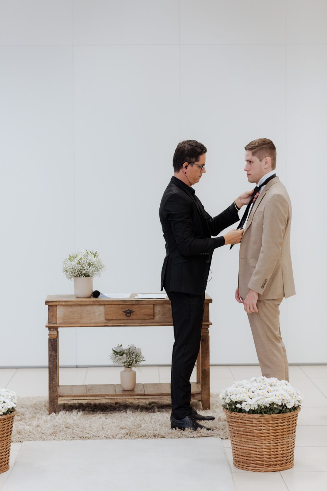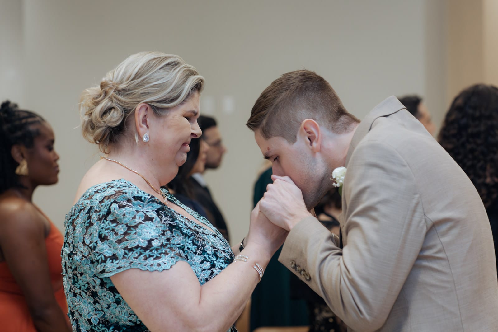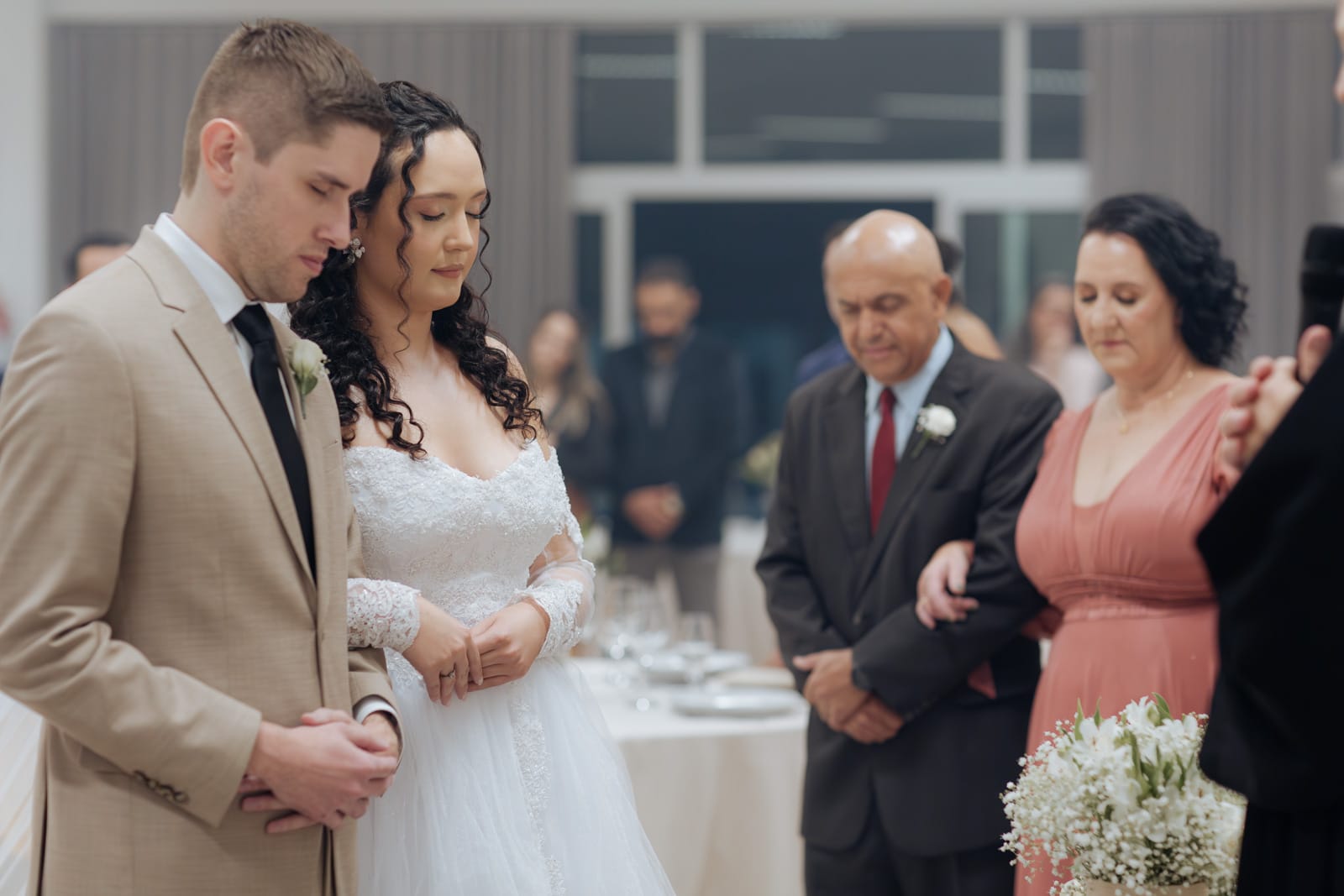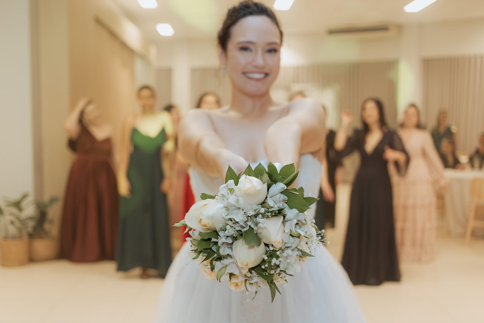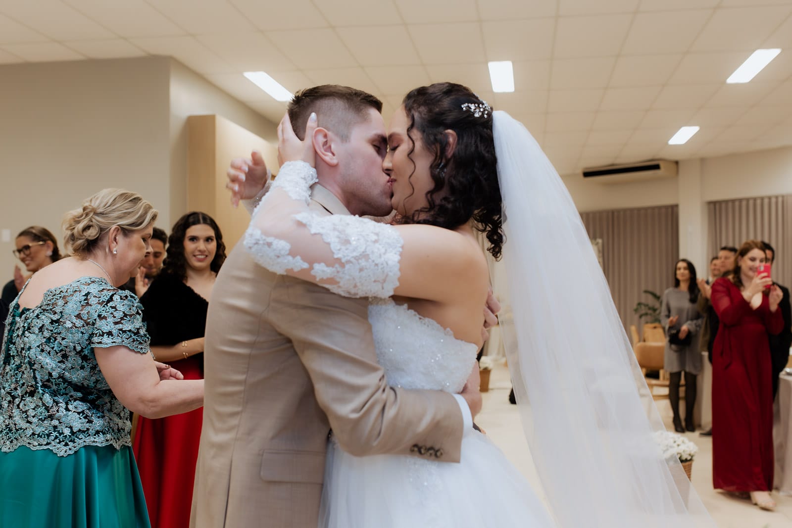 Gabriel e Gabriela optaram por um casamento intimista, cercado apenas pelas pessoas mais queridas. Essa escolha proporcionou uma atmosfera de aconchego e cumplicidade, onde cada convidado pôde sentir e compartilhar da felicidade genuína do casal. A emoção estava no ar, desde a troca de votos até os abraços calorosos e as palavras de carinho.