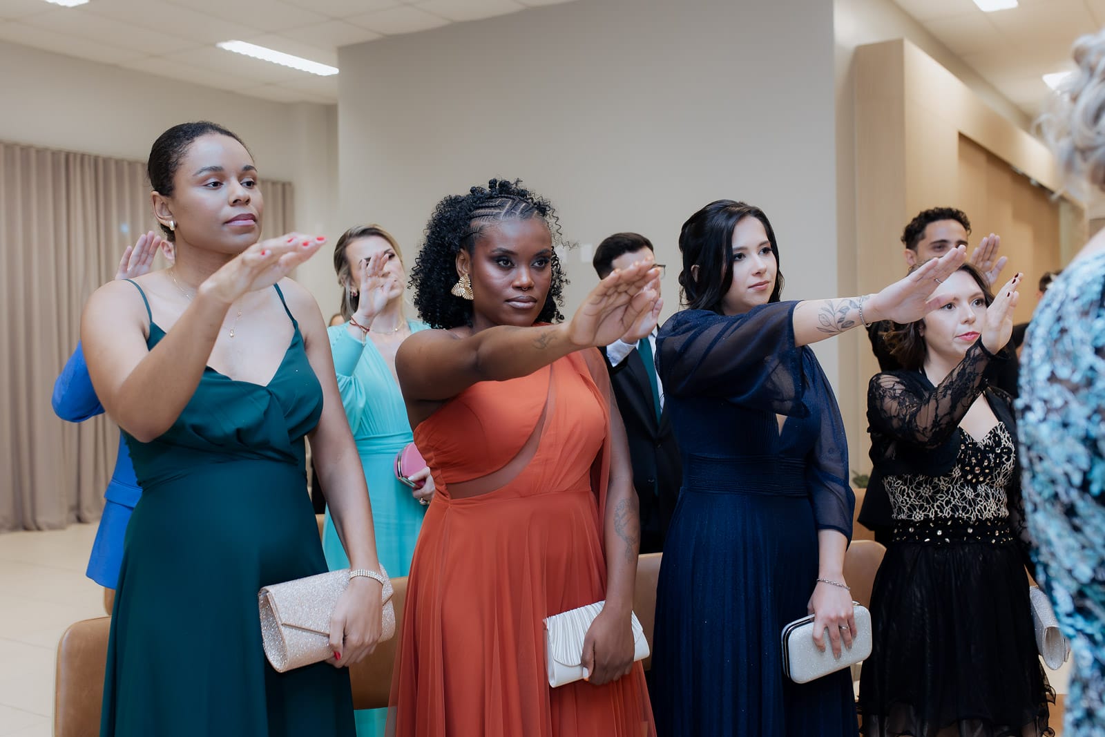 A Associação dos Magistrados de Florianópolis revelou-se um cenário versátil e elegante para a ocasião. Com seus espaços amplos e bem cuidados, o local permitiu a realização de uma cerimônia emocionante ao ar livre, seguida por uma recepção animada e descontraída. A beleza natural de Florianópolis, sempre presente, adicionou um toque ainda mais especial às fotografias.