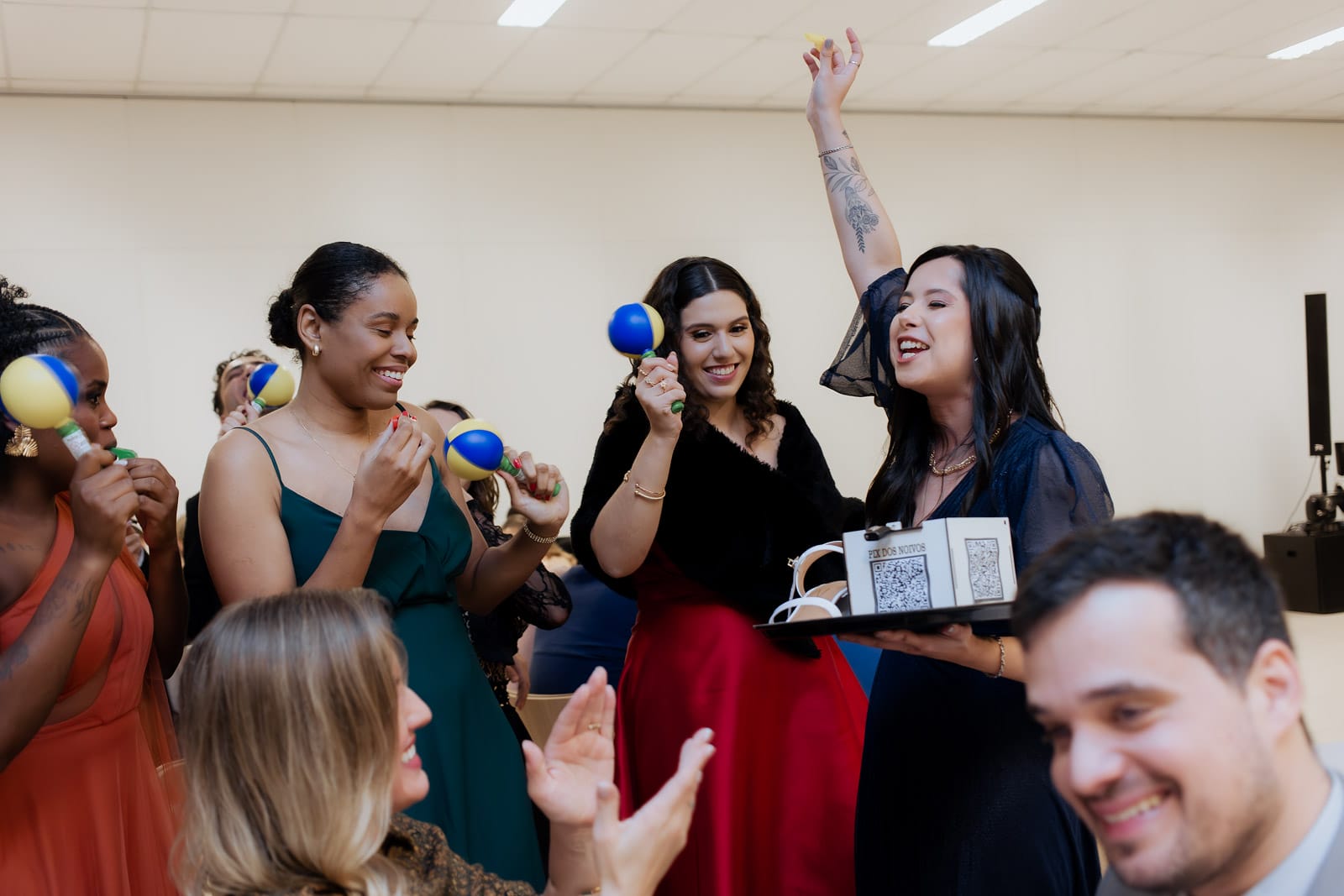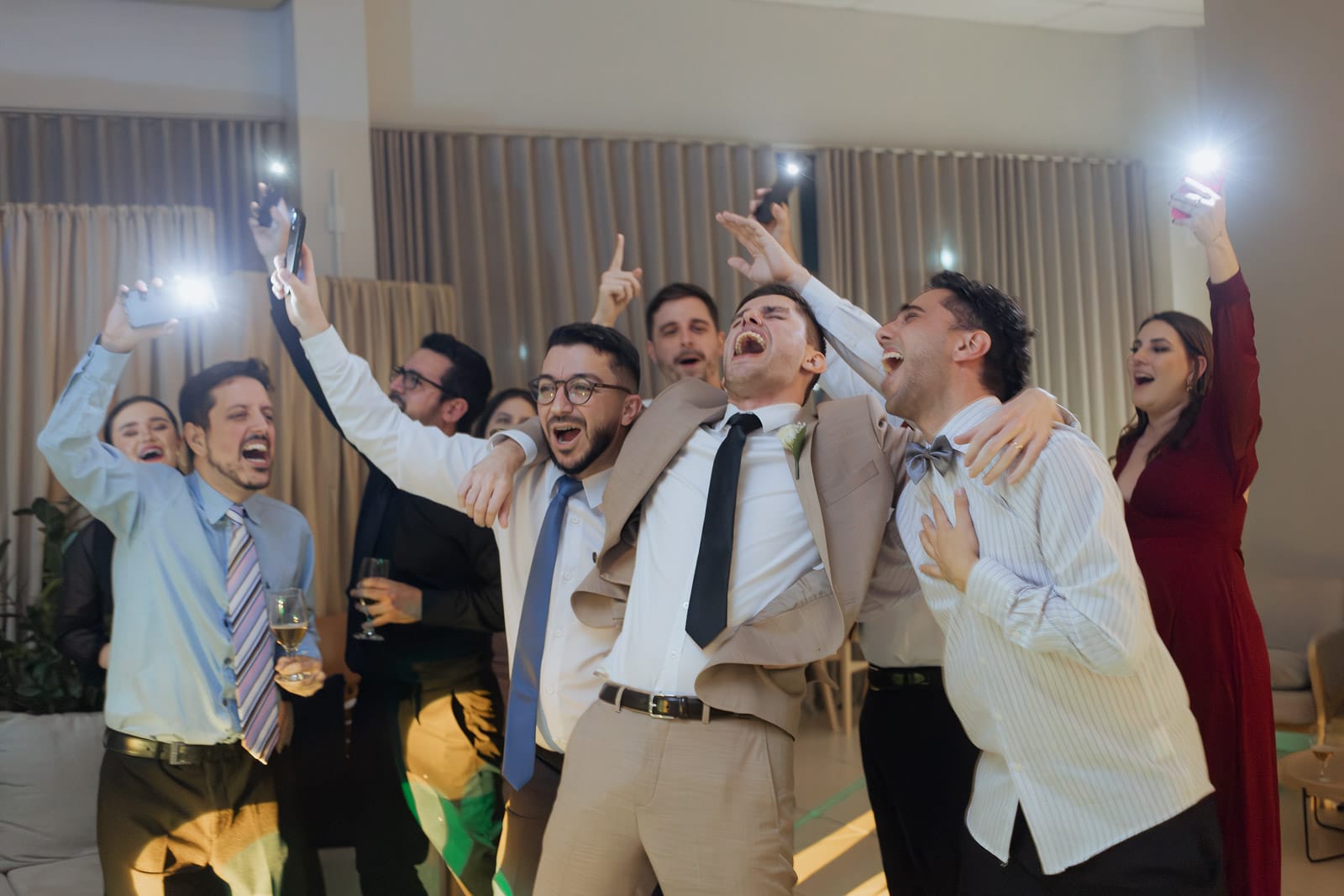 Momentos de descontração também não faltaram. As risadas espontâneas, os olhares cúmplices e a alegria contagiante dos noivos e de seus convidados renderam cliques que transmitem a verdadeira energia daquele dia.