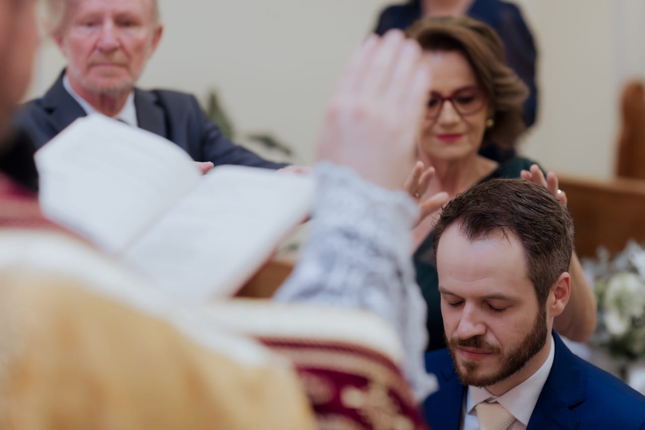 Vivenciar o casamento de Bruna e Thiago foi presenciar a concretização de uma família abençoada, celebrando o amor verdadeiro em sua forma mais pura e autêntica. A cerimônia intimista, realizada na charmosa capela da Paróquia São Judas Tadeu e São João Batista, em Palhoça, reuniu apenas 18 convidados – cada um deles escolhido com muito carinho e significado. O cenário escolhido refletiu o desejo do casal: um casamento pequeno, mas repleto de autenticidade, sofisticação e, sobretudo, amor.