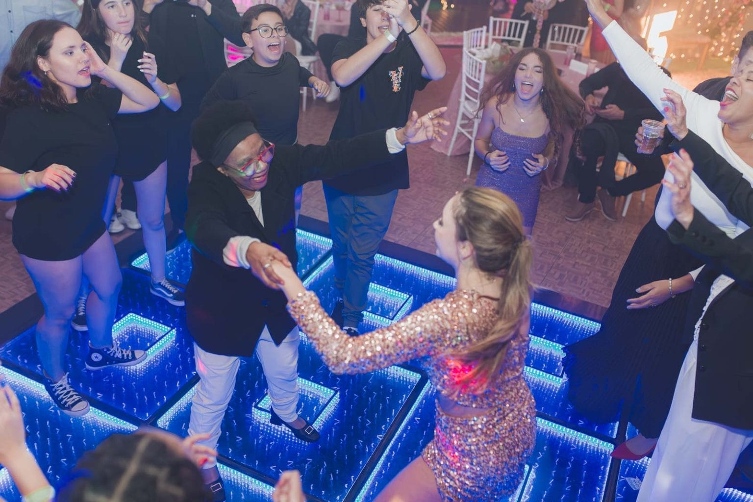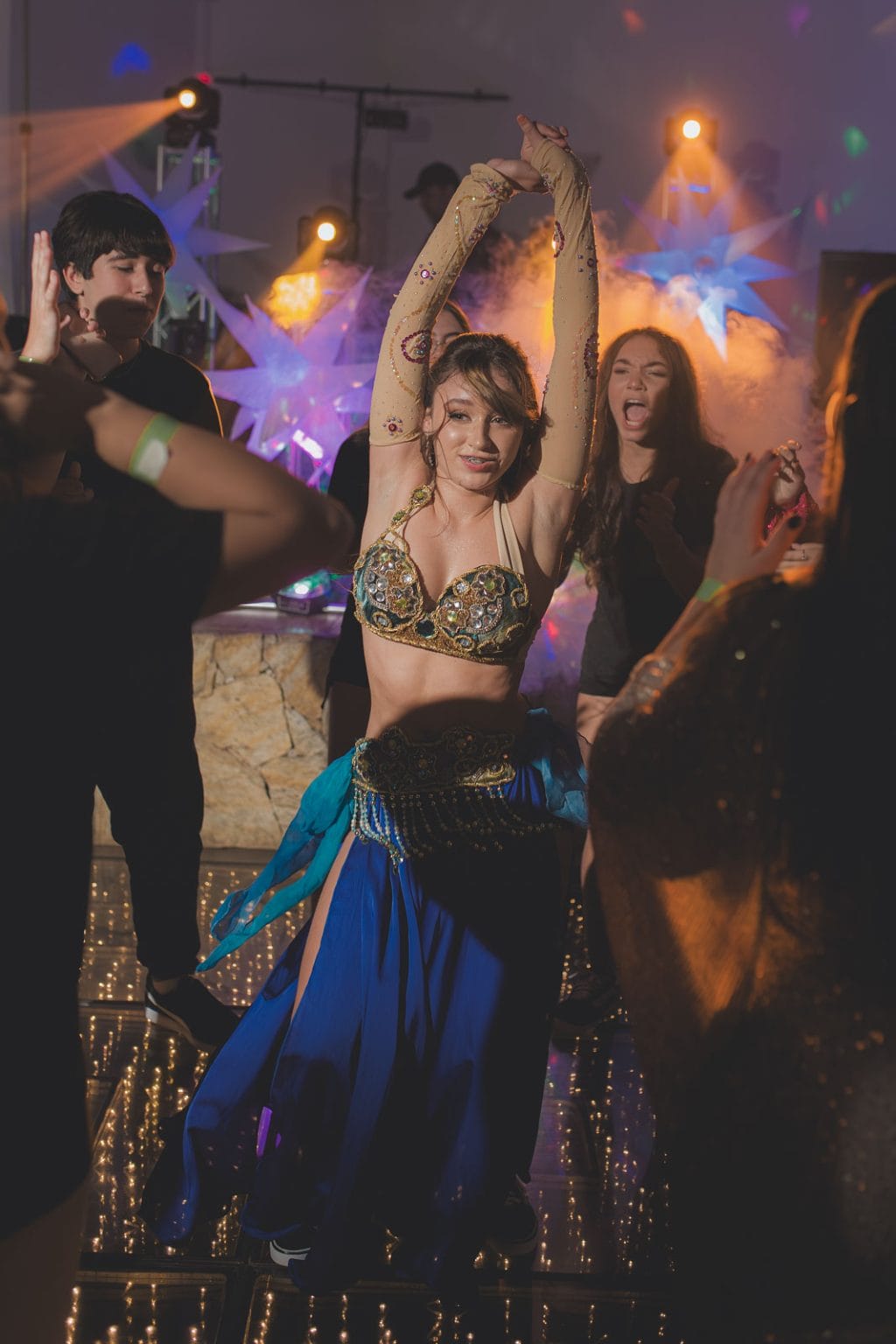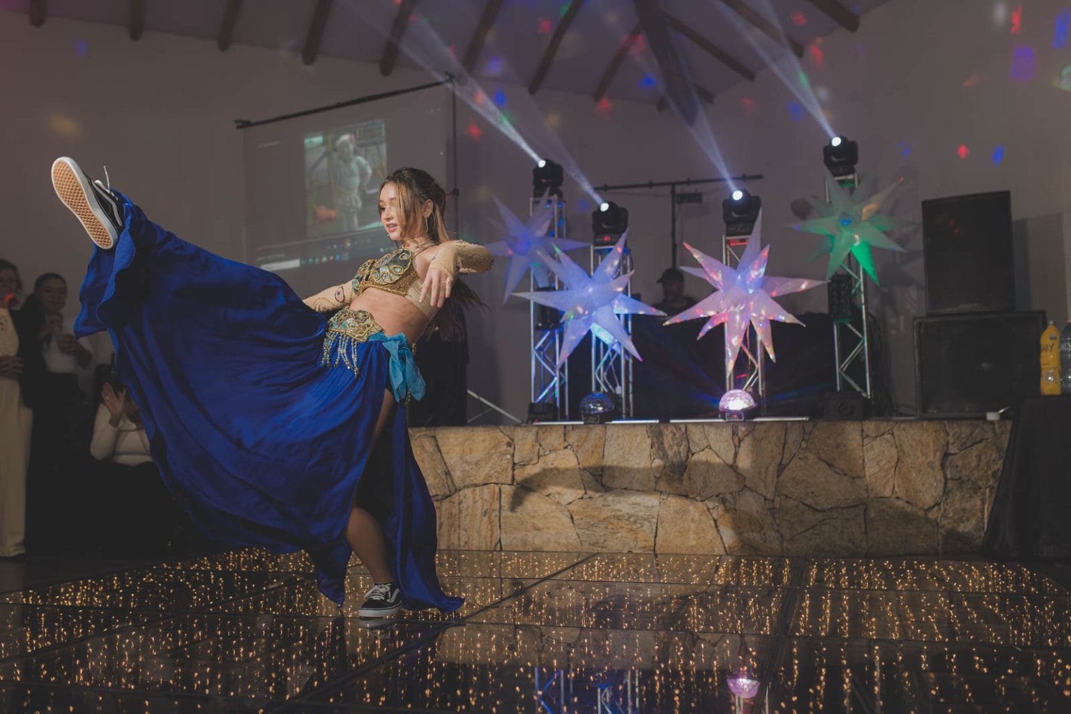 Desde os 2 anos de idade, Marina se dedica a dança e é apaixonada por ela. Tanto que isso se reflete em suas coreografias quê, com amor em cada passo de suas apresentações na noite. Com uma variedade de estilos, suas coreografias prenderam a atenção de todos os convidados, que ficaram maravilhados com cada passo sincronizado. A primeira dança com seu pai, foi um momento tocante, e a performance de odalisca animou a pista, fazendo todos se levantarem e dançarem juntos no final de sua apresentação. E claro, entre as apresentações, também teve a coreografia com suas amigas, que por mais uma vez maravilharam os olhos dos presentes convidados.