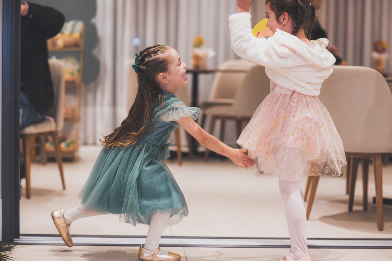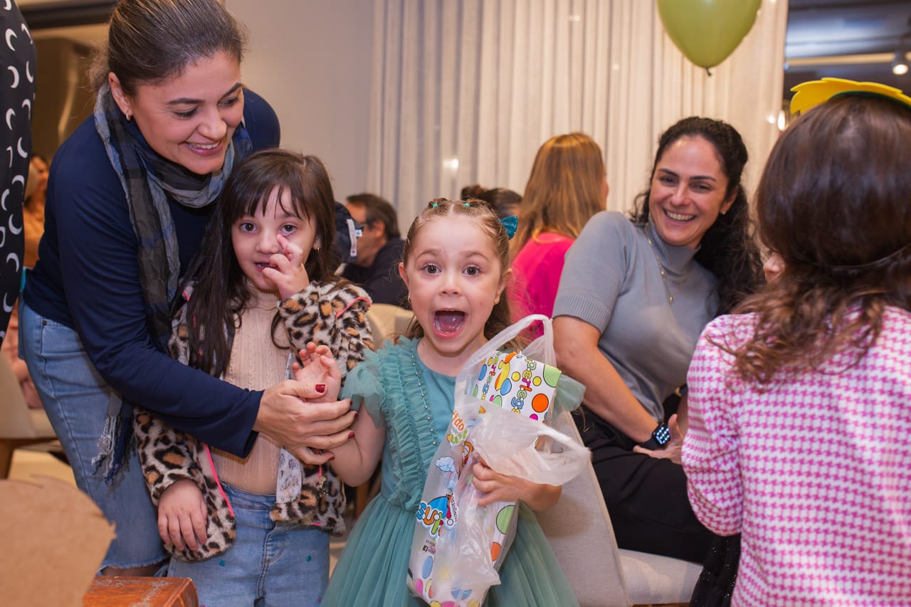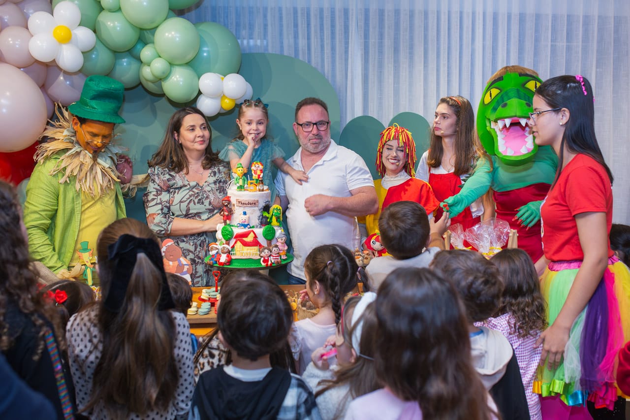 Theodora não parou um segundo. Correu, pulou, dançou e distribuiu os sorrisos mais contagiantes e abraços carinhosos em todos os convidados, fossem eles adultos ou seus amigos.