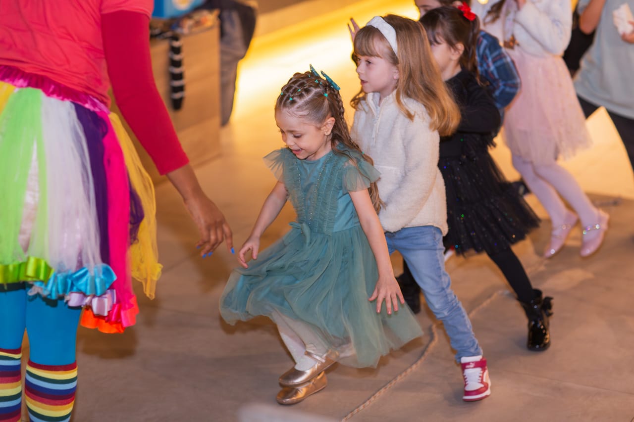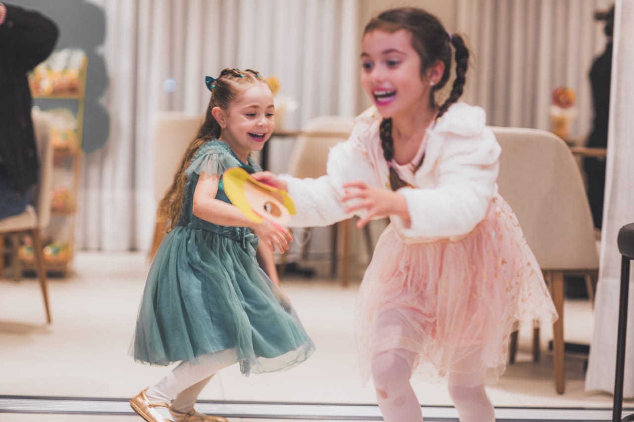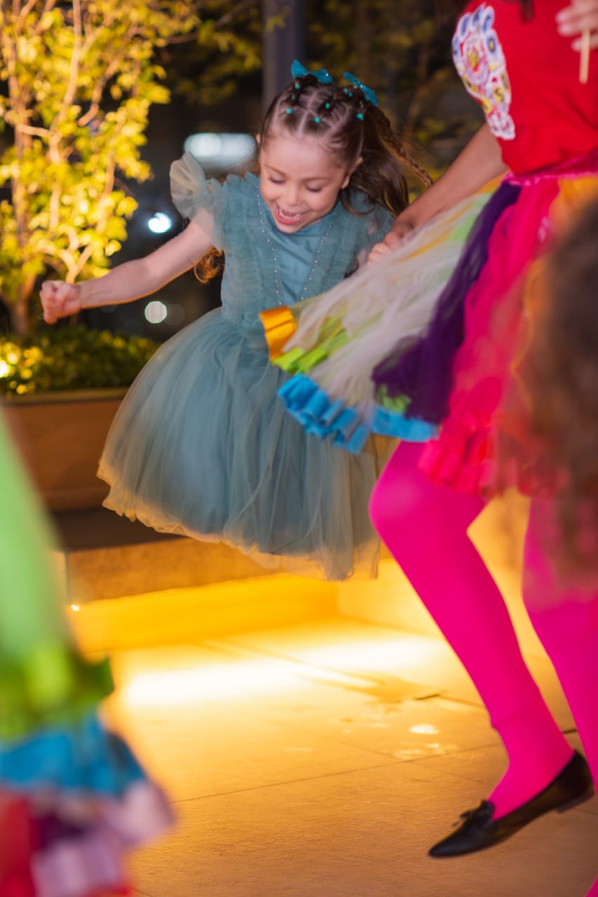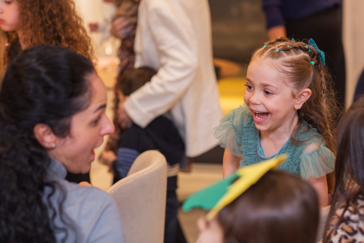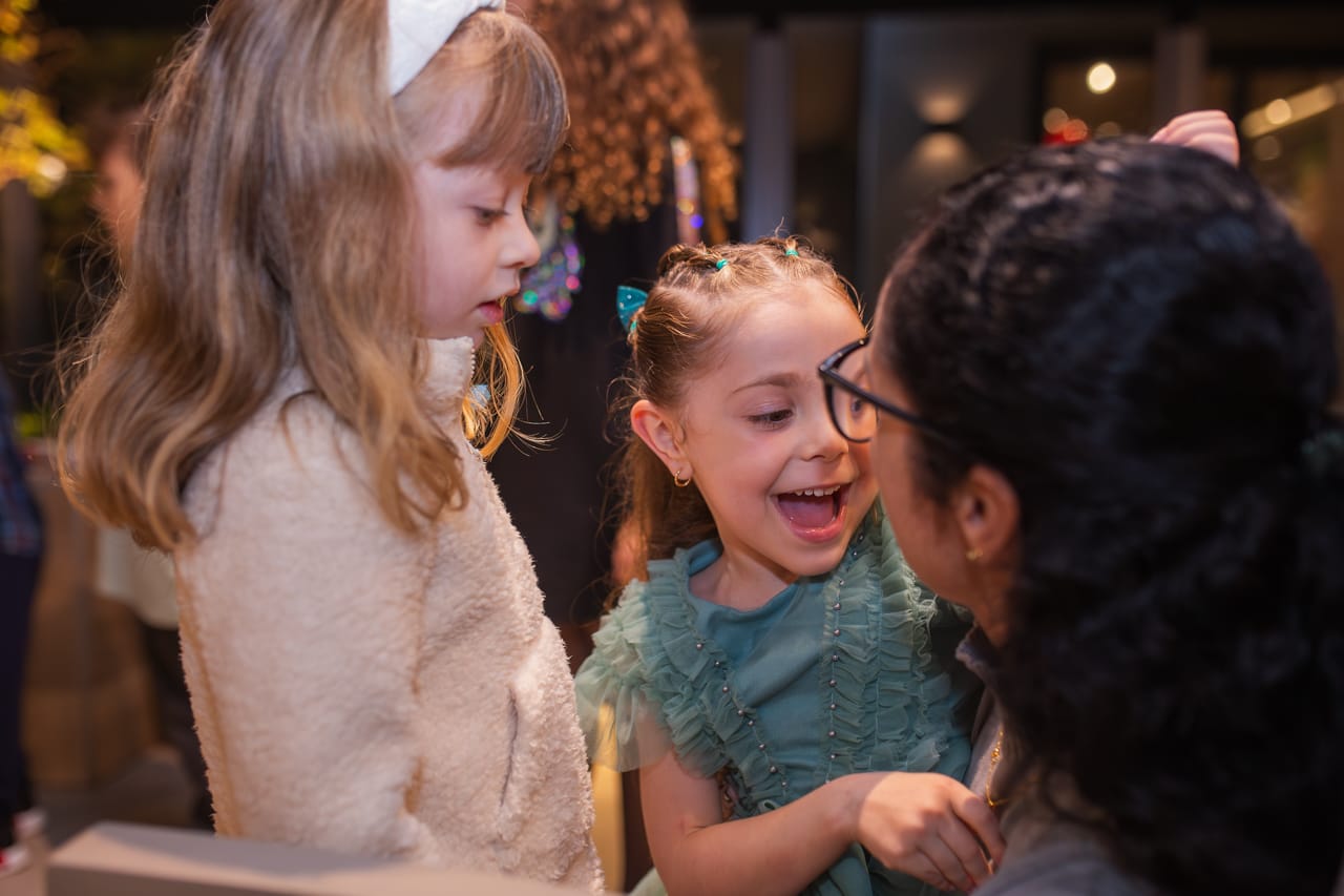 Um dos momentos mais marcantes da noite foi, sem dúvida, a apresentação teatral com a turma do Sítio do Picapau Amarelo. De repente, todos os personagens estavam ali, bem na frente da criançada, transformando o salão em um verdadeiro palco. Foi fascinante presenciar a interação genuína das crianças com a história, vendo seus rostinhos passarem por um misto de emoções: o suspense, o humor que arrancava gargalhadas e um interesse profundo nos personagens ali presentes. Capturar os olhares vidrados da Theodora e de seus amigos durante a peça foi registrar a magia em sua forma mais pura.