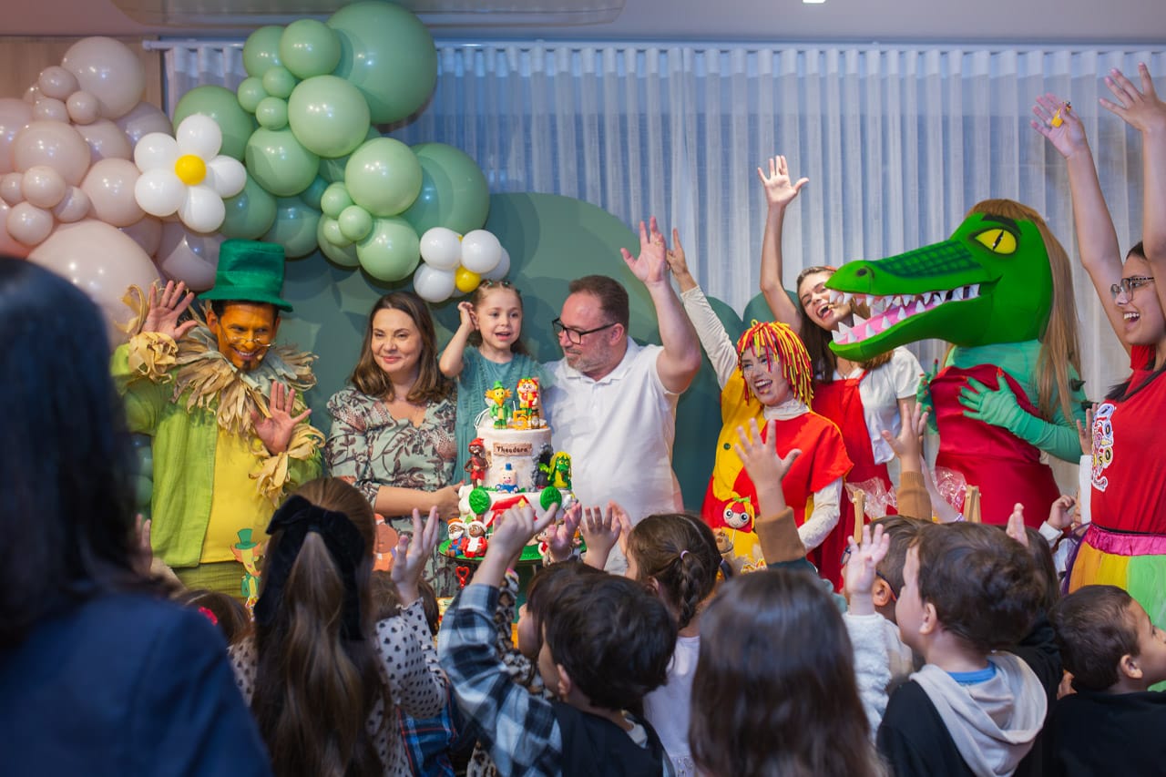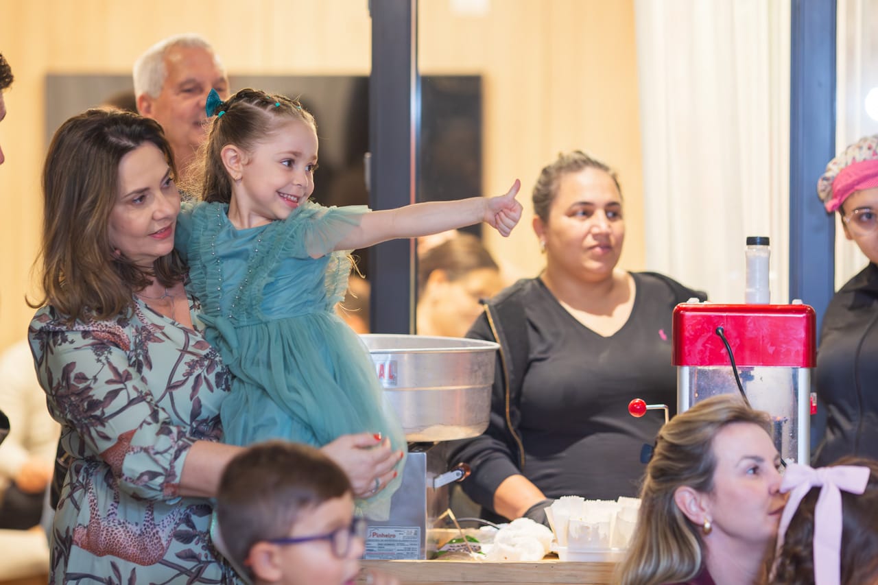 A celebração aconteceu em um lugar muito especial: o salão de festas na cobertura do condomínio da família, no coração do bairro Estreito, em Florianópolis. Consequentemente, o cenário, com uma vista deslumbrante, tornou-se o palco perfeito para a Theodora brilhar.